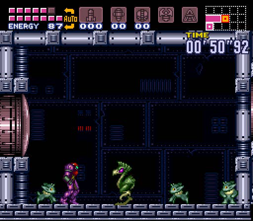 Much of what Super Metroid introduced to the medium seems to have been accidental genius. By that I don't mean Sakamoto and his team stumbled onto good ideas through dumb luck; a game as drenched in tiny details as Super Metroid clearly didn't happen by mistake. Rather, I simply mean that the devs invented elements for the sake of making Super Metroid better and, in the process, came up with game design concepts that worked just as brilliantly in (and soon trickled over to) other games. The auto-map improved greatly on the one seen in A Link to the Past, and its format became a universal standard once Castlevania: Symphony of the Night canonized it. Meanwhile, Super Metroid's ending screen expanded the original Metroid's concept of giving players different images of Samus based on performance to include a numeric breakdown of their speed and thoroughness. In the process, Super Metroid essentially created speedrunning.