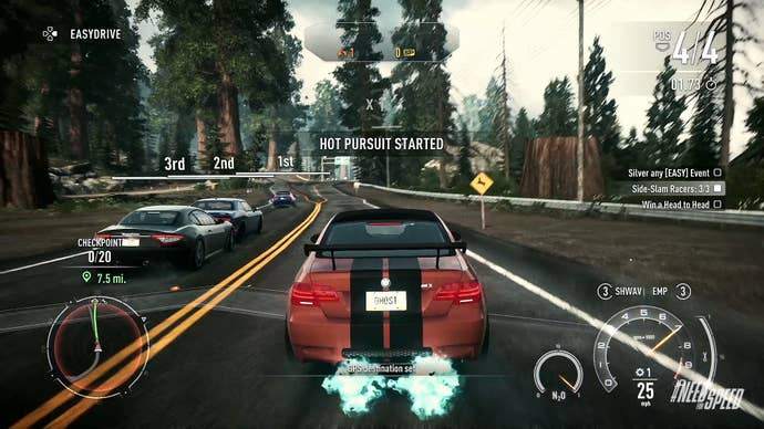 During one head-to-head race while I was on the Racer side of things, I was firmly in the lead, only to come around a hairpin and catch a cop's attention. This added a snag in my race because the best line was no longer an option. Cops have EMP and other goodies to force you off the road, so your best bet is to stick to turns and hidden paths. It made a relatively simple race much harder, but when I won and lost the cop, it felt amazing.