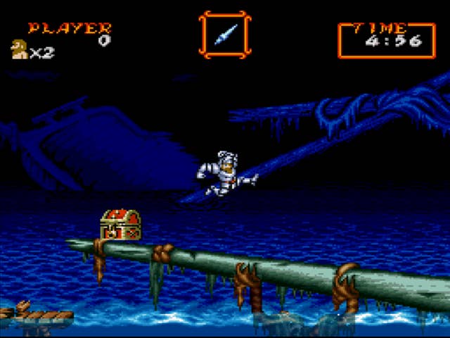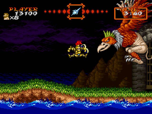 But Arthur's slightly improved mobility (double-jump or not, the boy moves like a tank) and wide weapon arsenal doesn't erase an important fact about Super Ghouls 'n Ghosts: Victory is only possible if you memorize every pixel of every level. You need to know enemy patterns inside-out. You need to know where power-ups will spawn, and which weapon is suited for which bad guy. You need to know where platforms will give out on you, and where the actual stage background will rise up to kill you.
